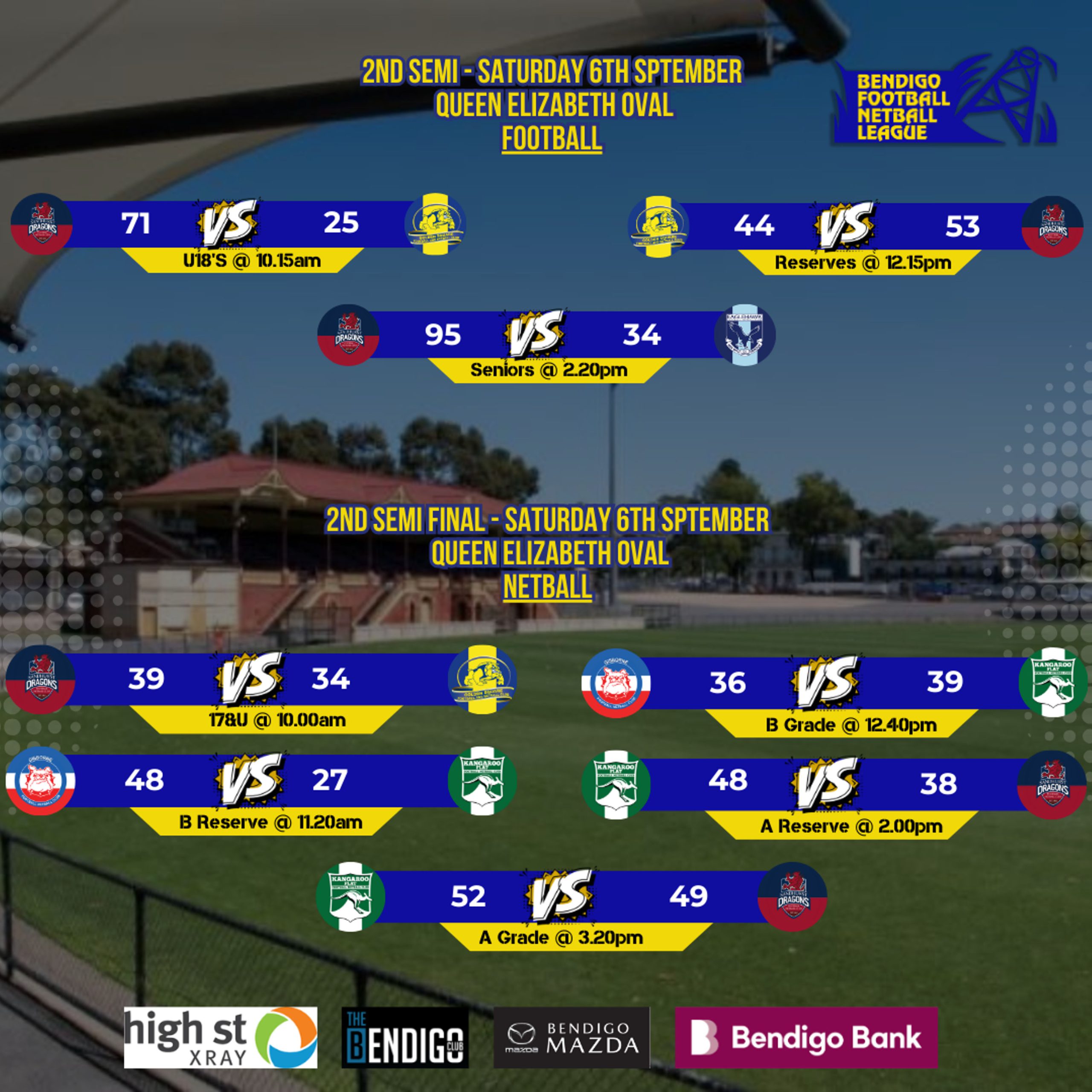 Six of the league’s eight clubs will feature in next Saturday’s preliminary finals at Queen Elizabeth Oval in Bendigo’s View Street.